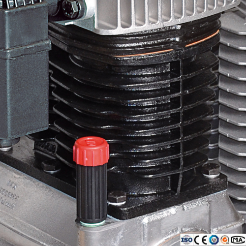 Gran capacidad de aceite y diferencia entre el nivel máximo y mínimo. Sin fugas de aceite. Pintado interiormente con material especial. Sin vibraciones. Gran espesor de fundición.