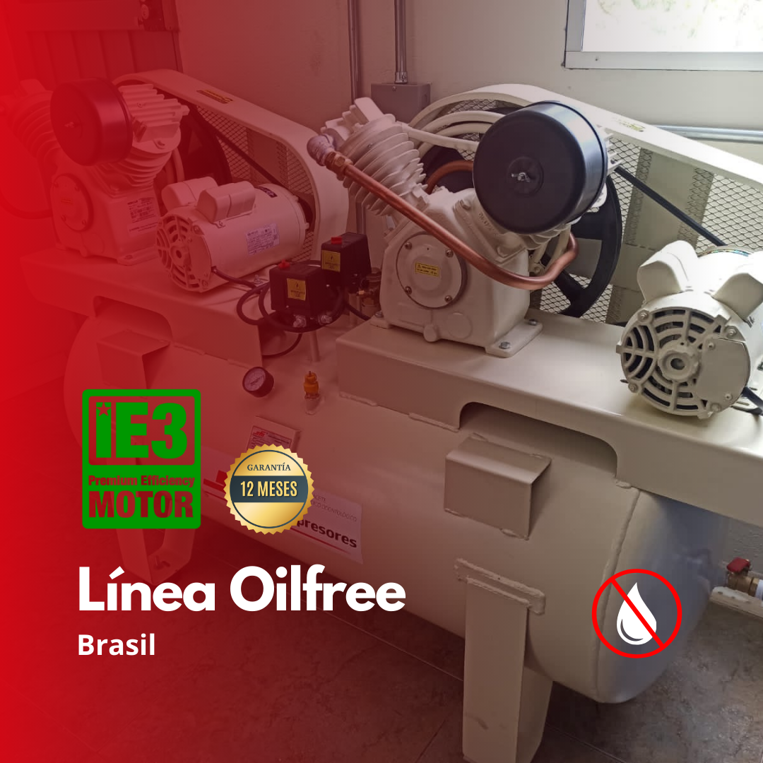 La instalación ideal para aplicación médico odontológica debe ser conformada por compresores libre de aceite con prefiltros y filtros coalescentes. Esto proporcionará un aire libre de humedad y partículas.