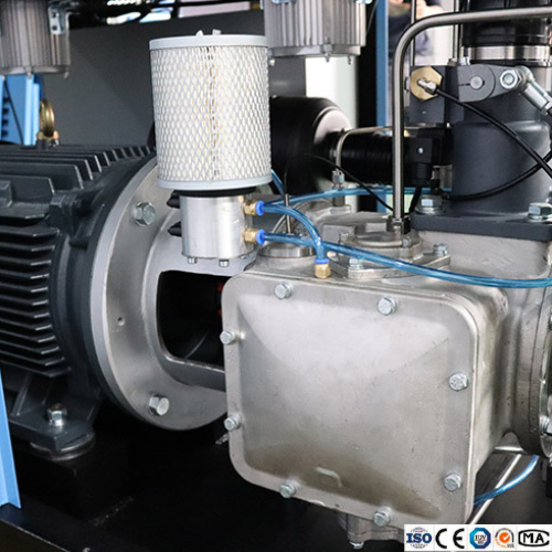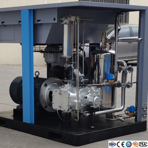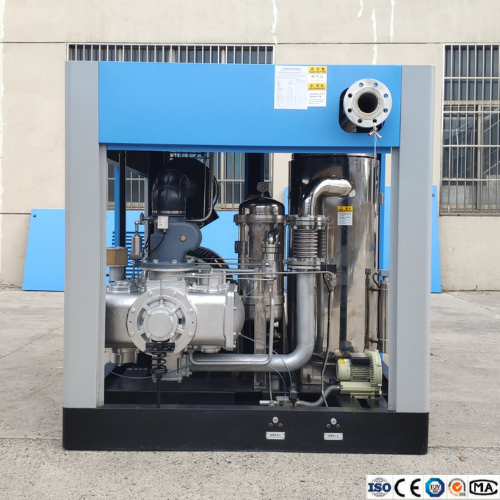 La unidad de tornillo sin aceite está fabricado en acero inoxidable 304L y sellado herméticamente con un sistema de sellado avanzado que integra un sello mecánico, una cámara de cortina de aire, un sello de laberinto y un canal de bypass.